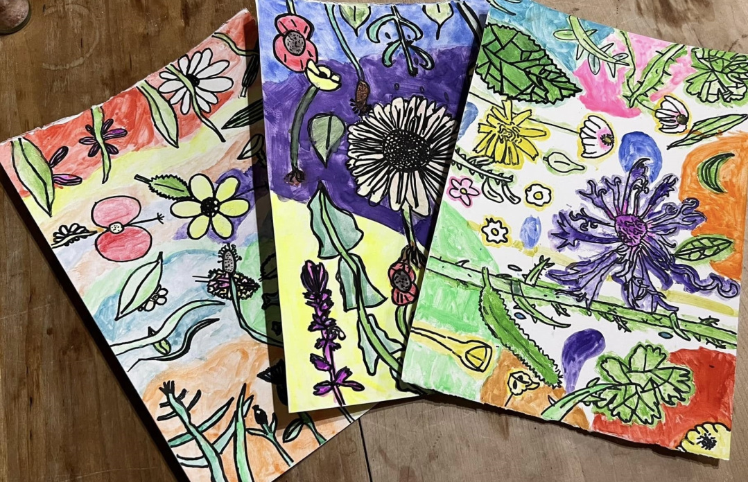 Our School Wildflower Workshop (June 2024) combined botanical art with an outdoor wildflower hunt. We took groups of Year 5 children to learn about the wildflowers they found in their school grounds. Photos of their findings were used in a wildflower art workshop led by local artist Hope Blamire, who volunteered her time to help the children create stunning artwork: |